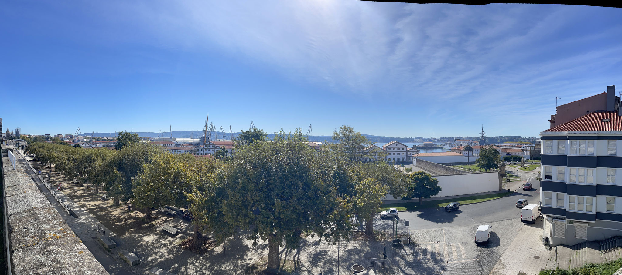 Infos aus Wikipedia: Ferrol liegt etwa 18 km (Luftlinie) nordöstlich von A Coruña an der Ria de Ferrol. Vom Meer her gibt es eine gut 3 km lange, enge Passage, bevor sich die Ria zur Hafenbucht von Ferrol und seinen Nachbargemeinden weitet. Am Ende der Schmalstelle sicherten zwei im 16. Jahrhundert gebaute Burgen den Hafen. Das Castelo de San Felipe wurde auf der Nordseite errichtet, das Castelo da Palma auf der Südseite. Kleinere Bastionen schützten die Einfahrt in die Ria. Nördlich der Einfahrt in die Ria de Ferrol befindet sich auch der moderne Außenhafen (Porto Exterior de Ferrol).