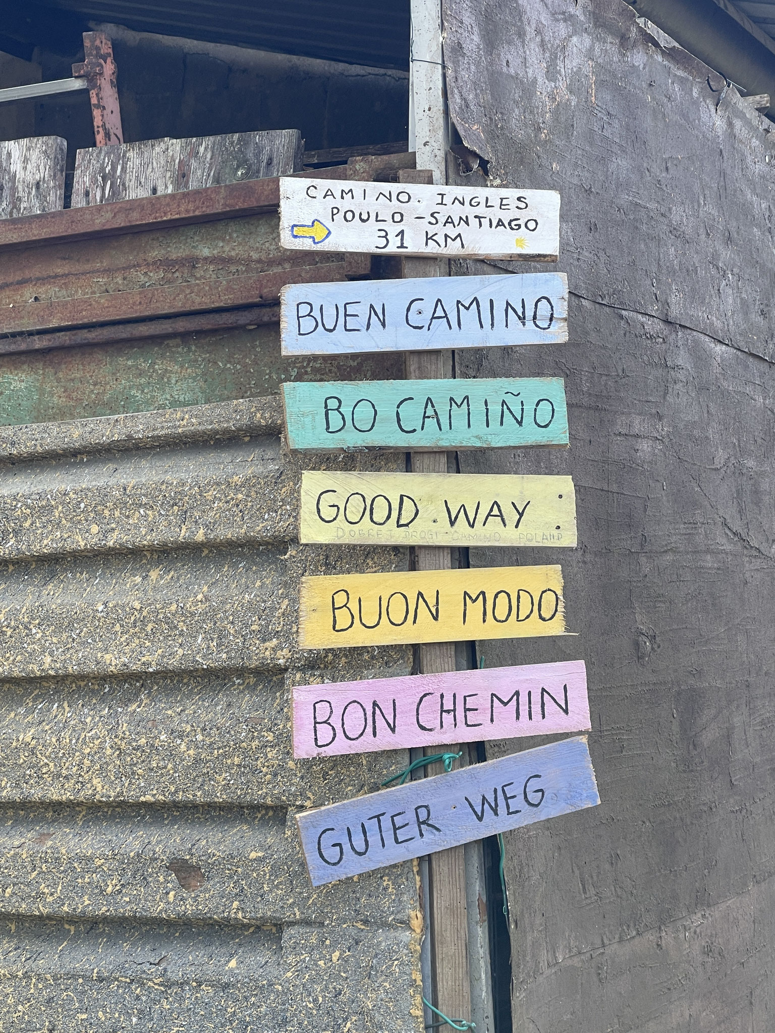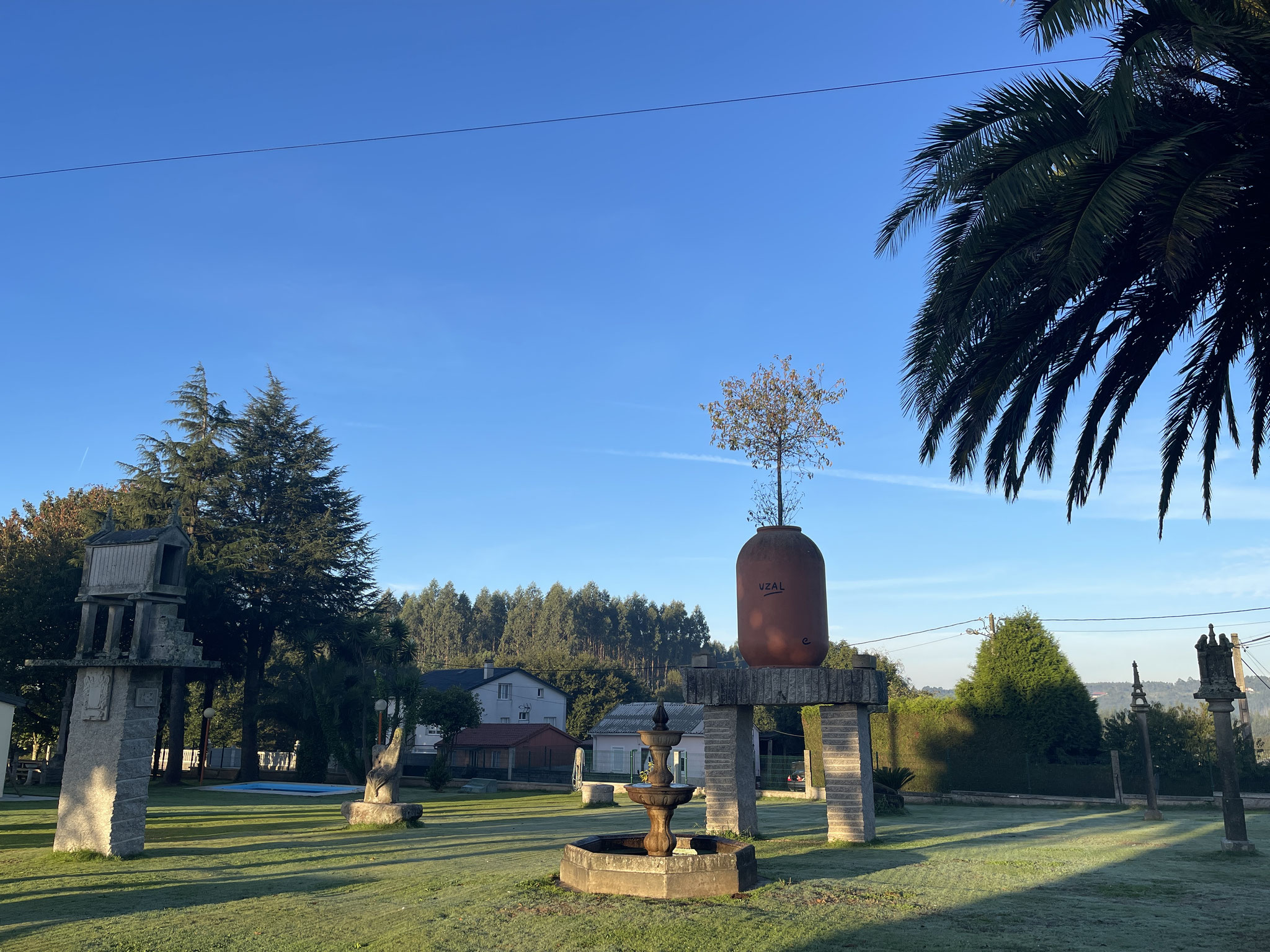 Nach 7 km ein Kaffee zur Stärkung … und das war es dann auch mit Verpflegung . Zwischendurch nur eine kurze Trink-Verschnauf-Umzieh-Pause und sonst Durchmarsch bis Sigüeiro. Die letzten 7km führen leider entlang der Autobahn und die Stadtkilometer tun dann ihr Übriges, um schließlich müde und hungrig in ein Lokal zu fallen. Danach noch ein wenig (bergauf) laufen, um ins Quartier zu kommen … Die Dusche ruft !