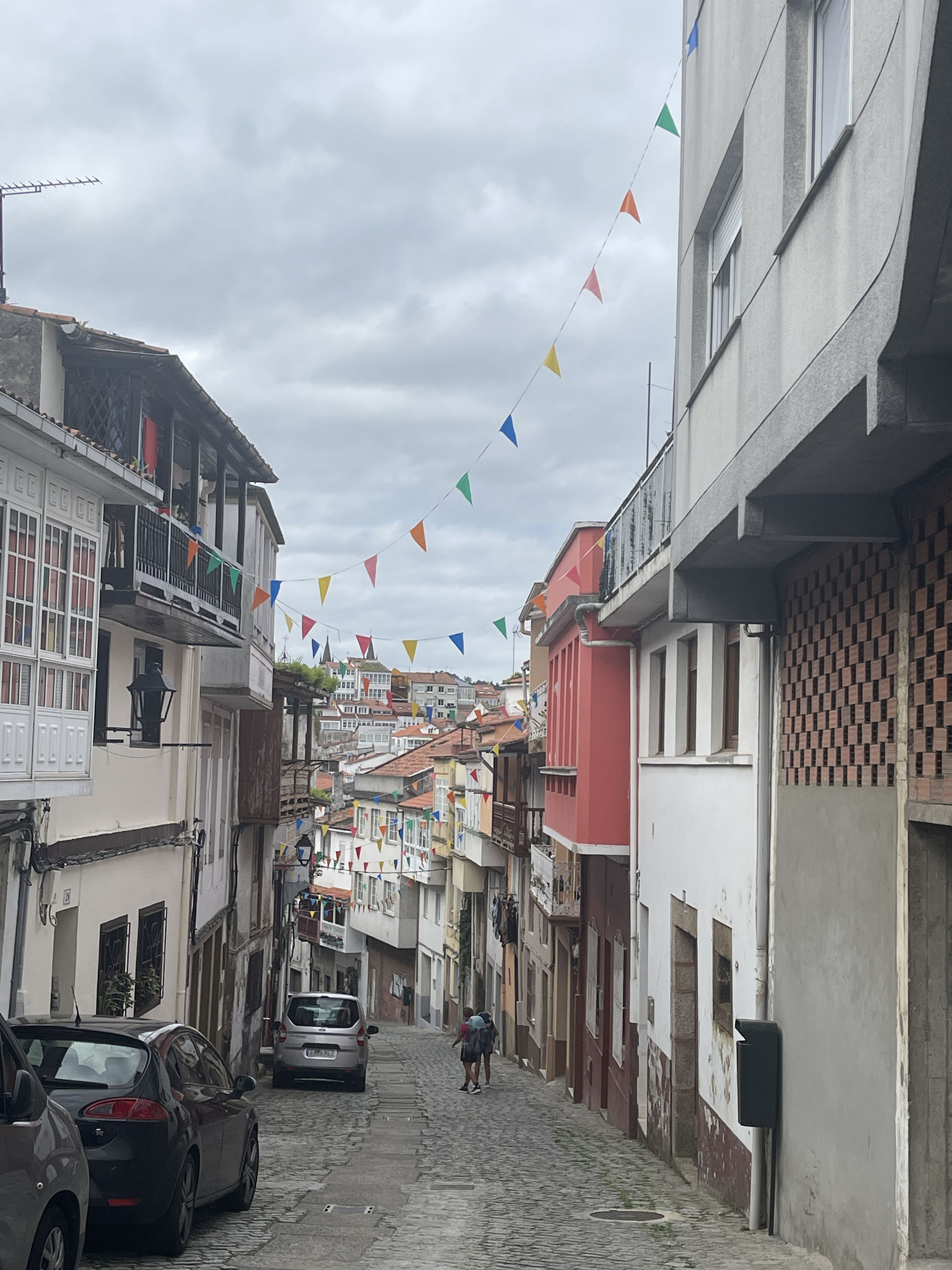 Da unser Gepäck noch nicht im Hotel war, nur pro forma umziehen und zum Essen. War sehr lecker Im Tourismusbüro informiert, wo wir morgen am besten wieder in den Jakobsweg einsteigen (damit wir nicht die Parallelstraße, in der sich das Hotel befindet, runterlaufen, um eine Straße weiter wieder raufzugehen.