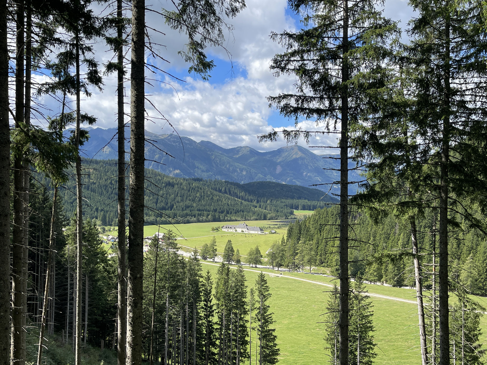 Vom Parkplatz Viehtaleralm entlang des Waldes über einen mehr oder weniger kuhfladenlastigen Weg auf den Bärenkogel. Am Ende der Weide durch das Viehgatter, dann der Wandertafel folgen: Schüttbauernalm. Immer der Forststraße folgen, bis man nach einiger Zeit eine weitere Beschilderung zur Schüttbauernalm (nach links weg) findet. Genügend Schilder weisen den richtigen Weg. Die letzte Abzweigung nach rechts hat es meistens an sich, etwas morastig zu sein. Es gibt aber meistens Ausweichmöglichkeiten.